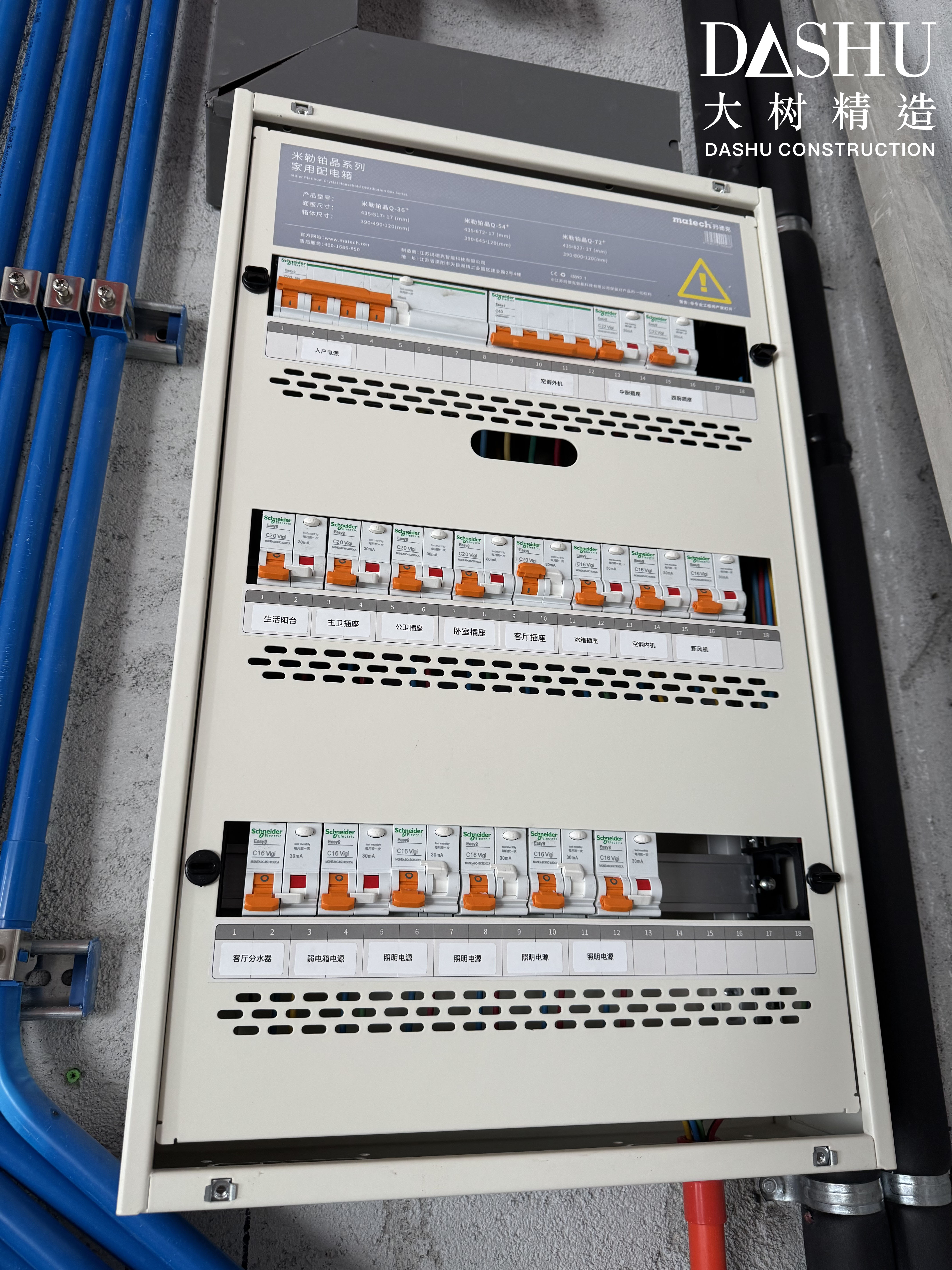 近日,我們臺州的合作伙伴分享了一組來自「四季辰院」240㎡大平層項目的現(xiàn)場實拍圖——整潔的線纜、嚴(yán)謹(jǐn)?shù)牟季?,以及那一眼便吸睛的米勒鉑晶Q/R-54系列配電箱,仿佛家的“電力心臟”,于細(xì)節(jié)處彰顯高端。
